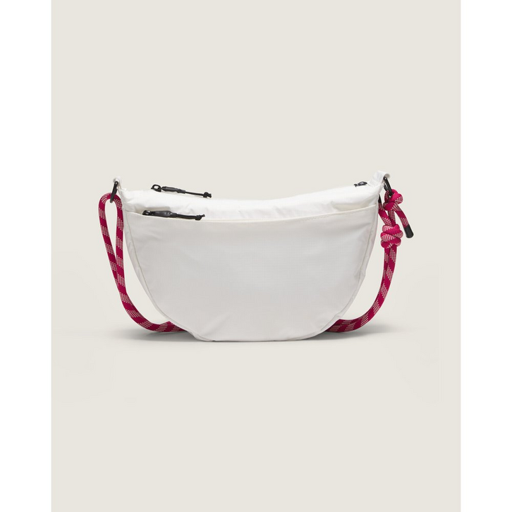 A Bolsa Belay Crescent Marshmallow é incrível para usar no dia a dia, ideal para guardar todos os seus itens essenciais. Além de um compartimento principal espaçoso, o modelo possui um bolso externo com zíper e um bolso interno com fecho. Revestida em poliuretano para proteção extra, traz uma alça de ombro ajustável moderna em corda.