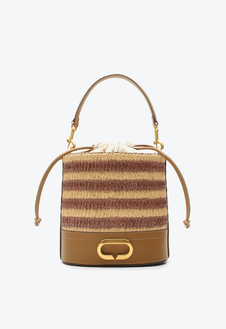 Bolsa bucket Isa média em couro caramelo listrada. Com bordado em ráfia listrado e acabamento em couro, essa bolsa é perfeita para acompanhar a rotina com estilo. O formato bucket oferece praticidade e espaço ideal para levar tudo o que você precisa, enquanto o detalhe metalizado adiciona um toque moderno e elegante. Versátil e charmosa, é aquele acessório que combina com os looks descontraídos e ensolarados da estação.