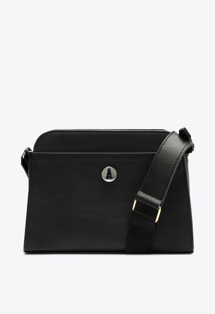 Bolsa crossbody Anacapri em gorgurão média com bolso frontal preta. O modelo tem shape estruturado e trendy. Possui fecho superior em zíper com puxador em tira, alça longa transversal em fita de gorgurão regulável e removível, com porta alça estendida. Com bolso externo frontal com detalhe em costura ornamental e aplicação de rebite metálico redondo + pintura da inicial “A” no mesmo tom da bolsa, assinatura Anacapri.