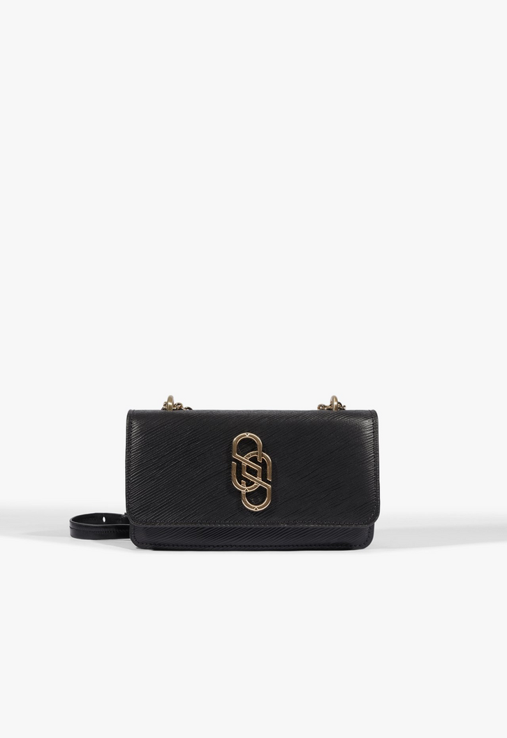 Com acabamento em couro texturizado, ela traz um toque sofisticado e moderno, enquanto o detalhe metalizado frontal adiciona brilho na medida certa. Seu tamanho compacto é ideal para quem busca praticidade sem abrir mão de estilo.