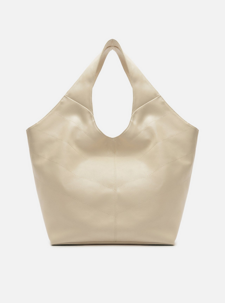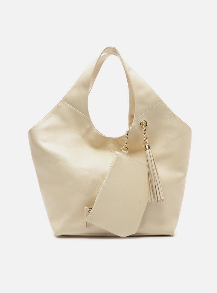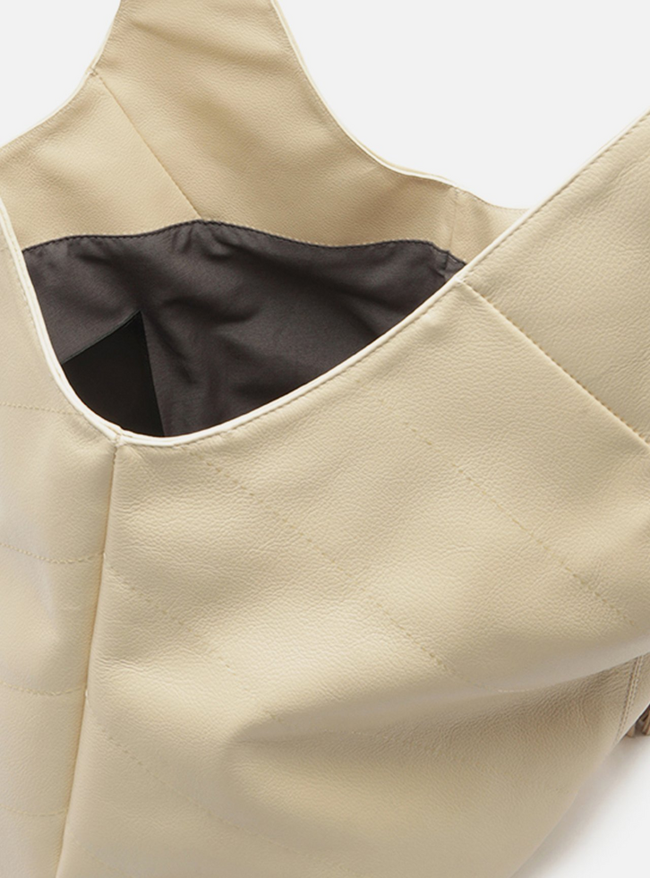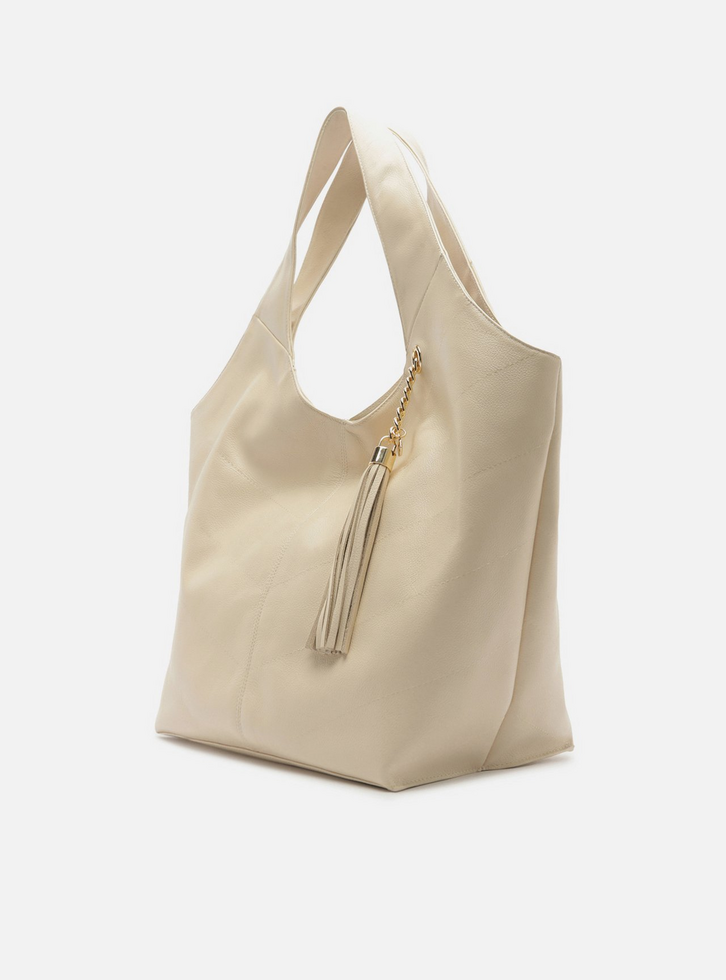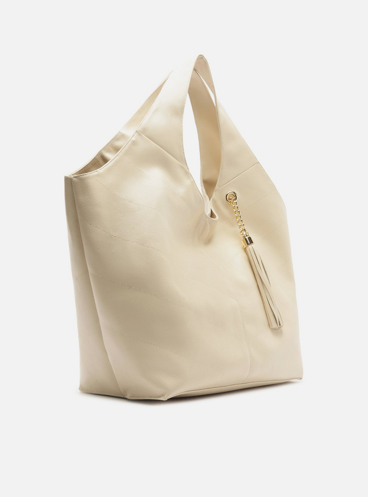 Bolsa hobo grande de couro branca. O acessório tem formato soft e costuras pesponto nas capas e emendas. Traz alças de ombro largas e contínuas à bolsa, além de fecho em imã. Detalhe em bag charm de barbicacho com corrente metálica, preso à bolsa por ilhós vazado na capa. Acompanha pouch interna.