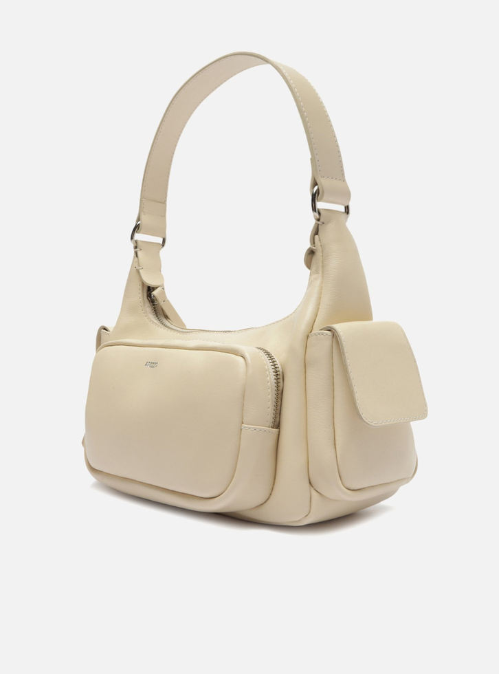 Bolsa hobo de couro Off-white. O modelo tem formato estruturado e laterais arredondadas. Traz alça de mão. Possui fecho superior em zíper. Com bolso externo frontal grande e fecho em zíper, além de dois bolsos laterais com tampo e imãs internos.