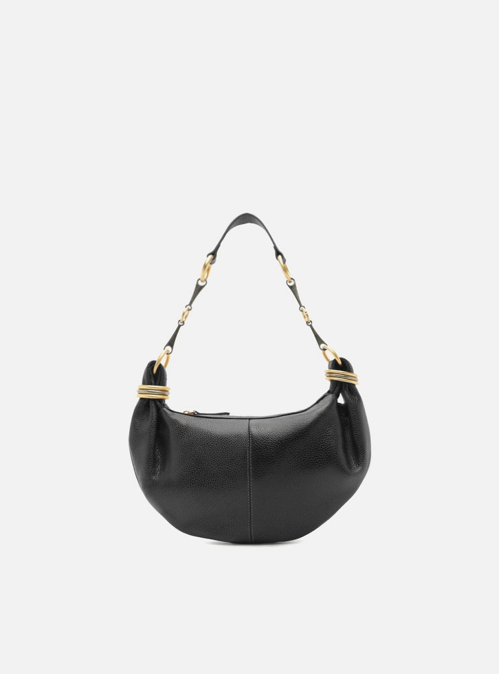 Bolsa Hobo Preta Couro Acamurçado Pequena Metais
