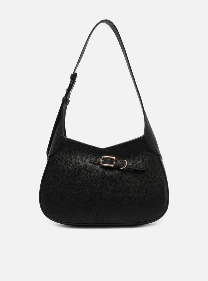 Bolsa Hobo Preta Média Detalhe Fivela