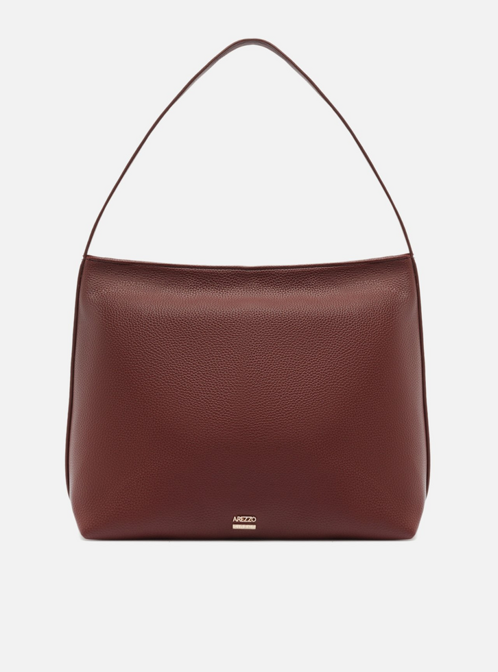 Bolsa feminina hobo grande na cor vermelha. O acessório apresenta formato maleável e espaçoso, com acabamento liso. Traz alça única de ombro. O modelo possui fecho superior em zíper. Na parte frontal inferior, inscrição do nome da marca em peça metálica.