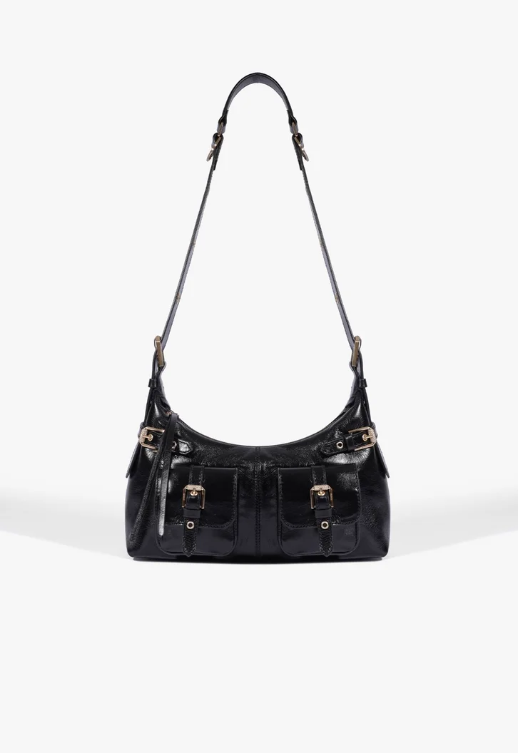 Com shape baguete e visual urbano, essa bolsa marrom perfeita para quem busca estilo com praticidade. Os dois bolsos frontais adicionam funcionalidade ao design, enquanto a al a com ilhoses e fivelas personalizadas Schutz imprime um toque moderno e marcante. O fechamento em z per garante seguran a para seus itens. Aposte! Comprimento da al a: 42cm | Largura da al a: 3cm