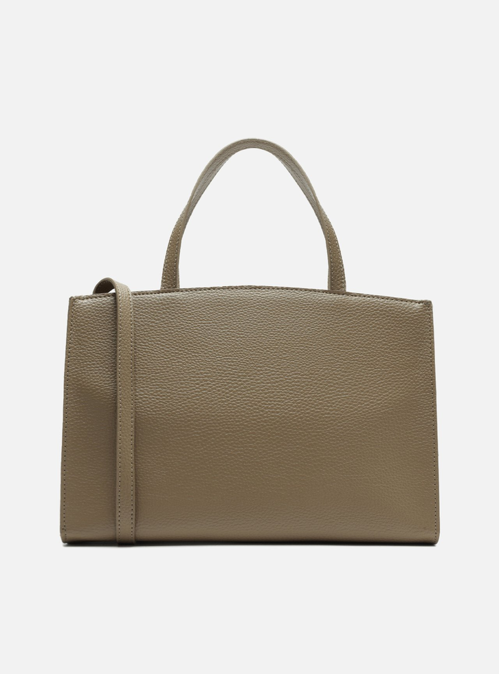 Bolsa tote cinza. Possui alça de mão e alça comprida ajustável, com zíper para fechamento e forro rosa na parte interna. Logo da Arezzo na parte da frente, acompanha mini bag.