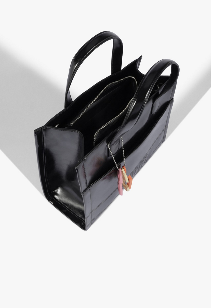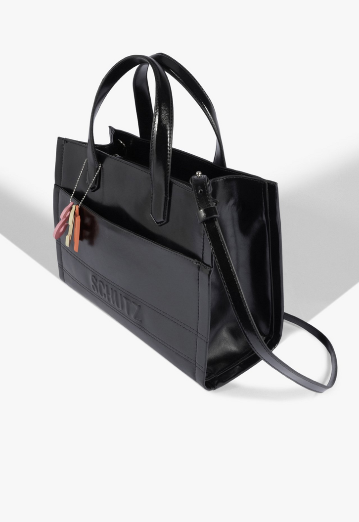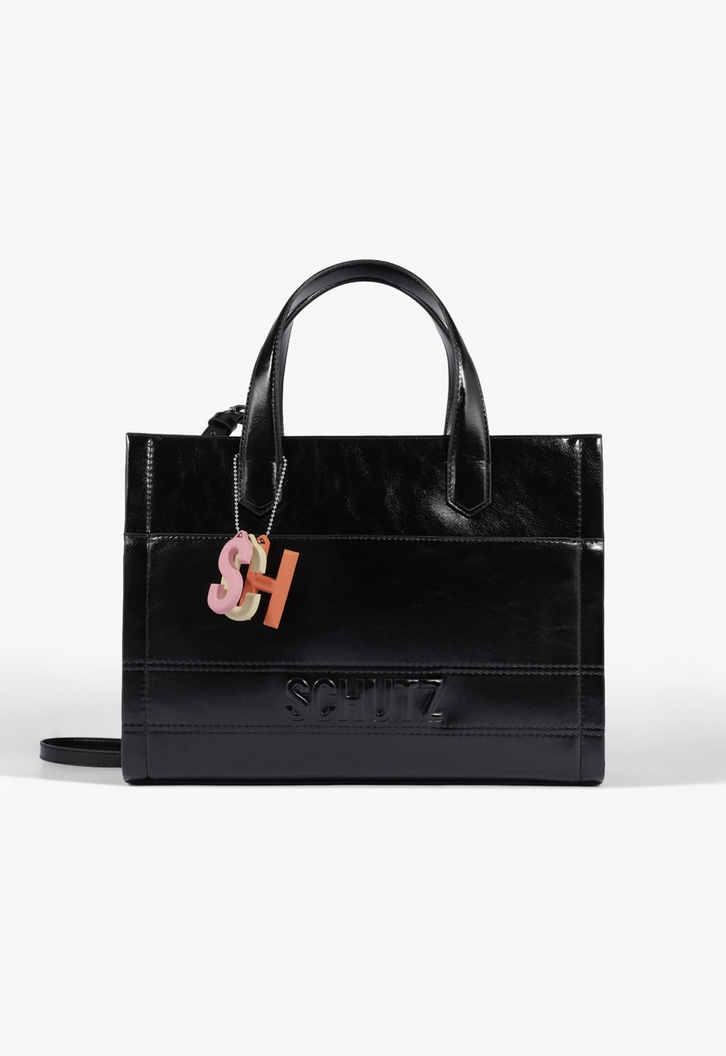 Essa bolsa maxi tote preta traz funcionalidade com um visual superatual! Com costura em relevo e alças com volume, ela conta com a praticidade do bolso frontal funcional, fechamento por zíper e acompanha alça longa para usar a tiracolo. O toque fun e trendy fica por conta do bag charm colorido emborrachado com letras Schutz - um detalhe que faz toda a diferença! Sabe aquele modelo superespaçoso para o dia a dia? É essa bolsa! Comprimento da alça tiracolo: 45cm | Largura da alça tiracolo: 1,5cm; Comprimento da alça curta: 13cm | Largura da alça curta: 2cm