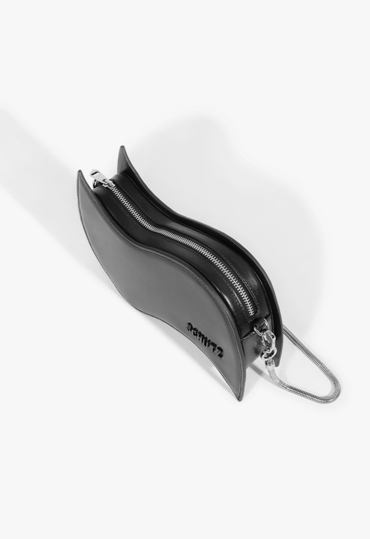 Descolada e moderna, essa shoulder bag feita em couro com formato assimétrico é um verdadeiro statement. O fechamento em zíper garante segurança e praticidade, enquanto a alça de corrente adiciona um toque de estilo urbano e sofisticado. Perfeita para quem busca um acessório único e cheio de personalidade! Luz de alça: 30 cm | Largura da alça: 7 cm.