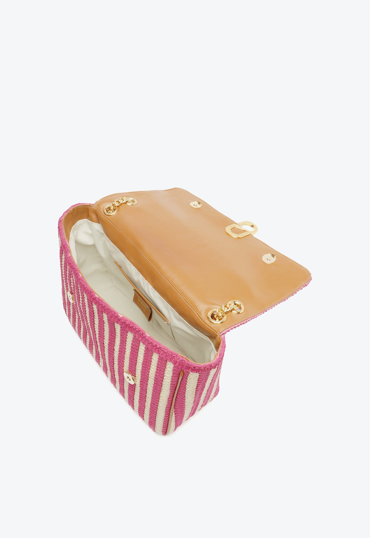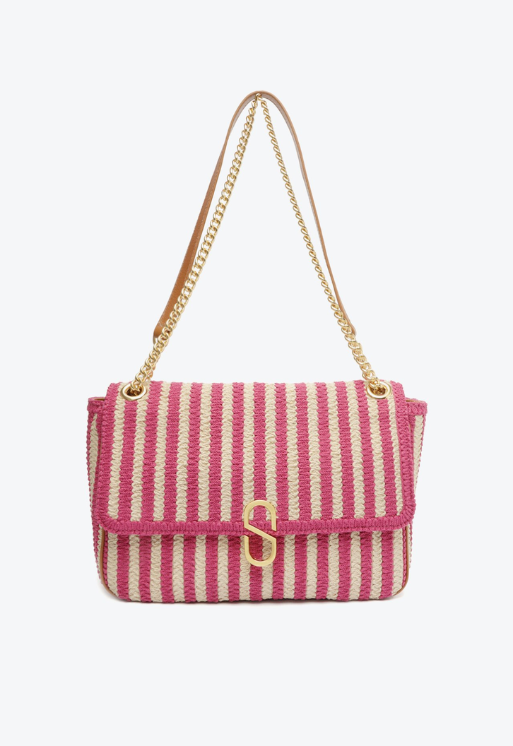Transforme seu visual com essa deslumbrante bolsa shoulder média, confeccionada em material de bordado bicolor, acentuado por detalhes em couro. O refinado fechamento em botão ímã revela um interior organizado, com bolso no forro para praticidade. O enfeite de metal em S na frente adiciona um toque de sofisticação. Com uma alça de corrente e ombreira de couro, fixa e ajustável, essa peça versátil pode ser usada como shoulder ou tiracolo, elevando seu estilo.