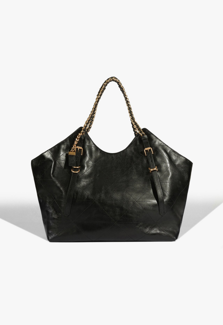 Elegante e espa osa, essa bolsa Schutz combina o brilho do couro com o detalhe sofisticado das al as em corrente dourada. Ideal para quem busca praticidade sem abrir m o de estilo e sofistica o.