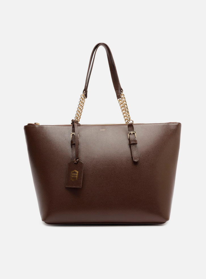 Bolsa Shopping Marrom Cacau Couro Grande Alça Corrente