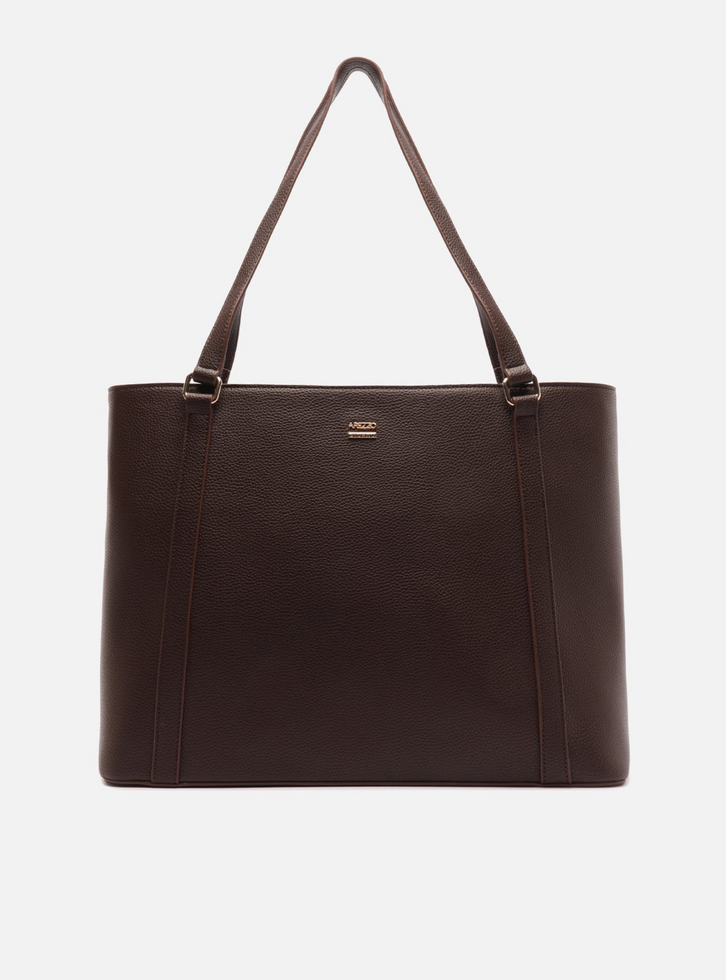 Bolsa feminina shopping grande marrom. O acessório possui formato estruturado e acabamento texturizado. Traz alças duplas de ombro alongadas e recortes frontais que valorizam o design. Com fecho superior em zíper. O modelo conta com logo metálico discreto na parte frontal.