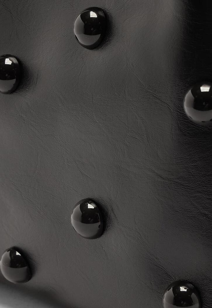 Bolsa hobo média, com detalhe em esferas, na cor preta. No tamanho M, o modelo se renova para a temporada, com material similar ao couro e ótimo caimento. Apresenta um shape molinho com efeito soft e aplicação de maxi esferas em resina, no mesmo tom da peça, na capa frontal. Apresenta fechamento superior em zíper, com puxador em tira. Traz alça de ombro fixa, mais larga e comfy.