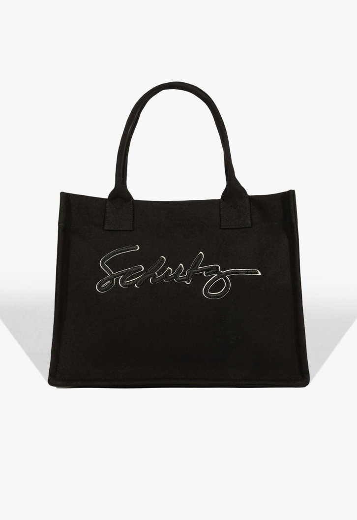 Com um mood descontraído e toque fashionista, essa bolsa shopping preta feita em lona com detalhes em couro na alça é puro charme! O logo cursivo Schutz adiciona personalidade ao visual, enquanto o design superespaçoso garante praticidade para o dia a dia. Ideal para os dias de verão - do look de praia ao passeio na cidade! Comprimento da alça: 23cm | Largura da alça curta: 2cm