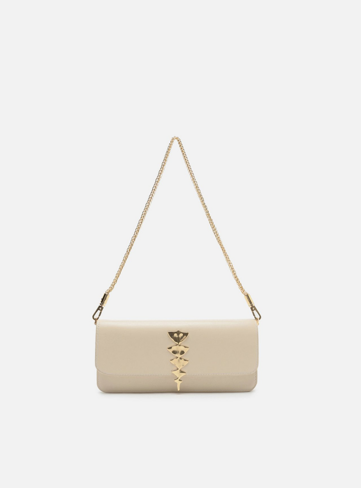 Bolsa shoulder pequena em couro branca. O acessório tem formato estruturado e acabamento macio. Traz detalhe frontal em metais dourados com inspiração marítima. Possui fecho em tampo com imã e alça removível em corrente metálica.