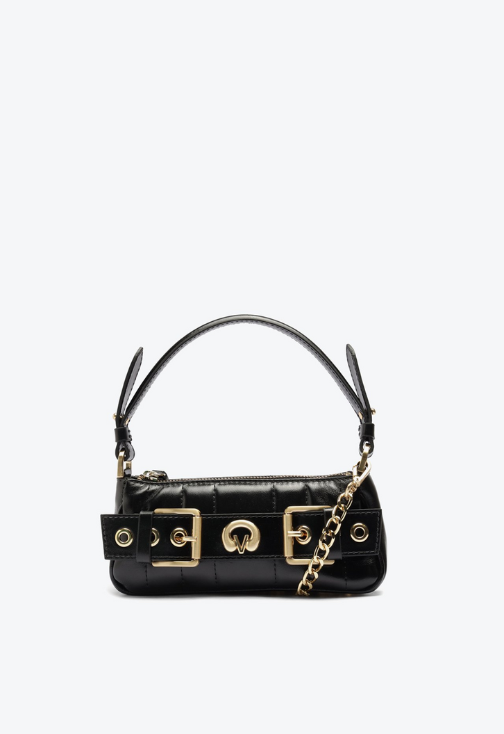 Bolsa Shoulder Lien Pequena Preta possui acabamento matelassê vertical e faixa frontal com fivelas douradas polidas, que valorizam o design. Com shape compacto, clean e semi-estruturado, é extremamente versátil e fácil de combinar. Perfeita para composições de summer cool ou para adicionar um toque despojado aos looks urbanos, essa bolsa tem tudo para se tornar sua favorita do dia a dia.