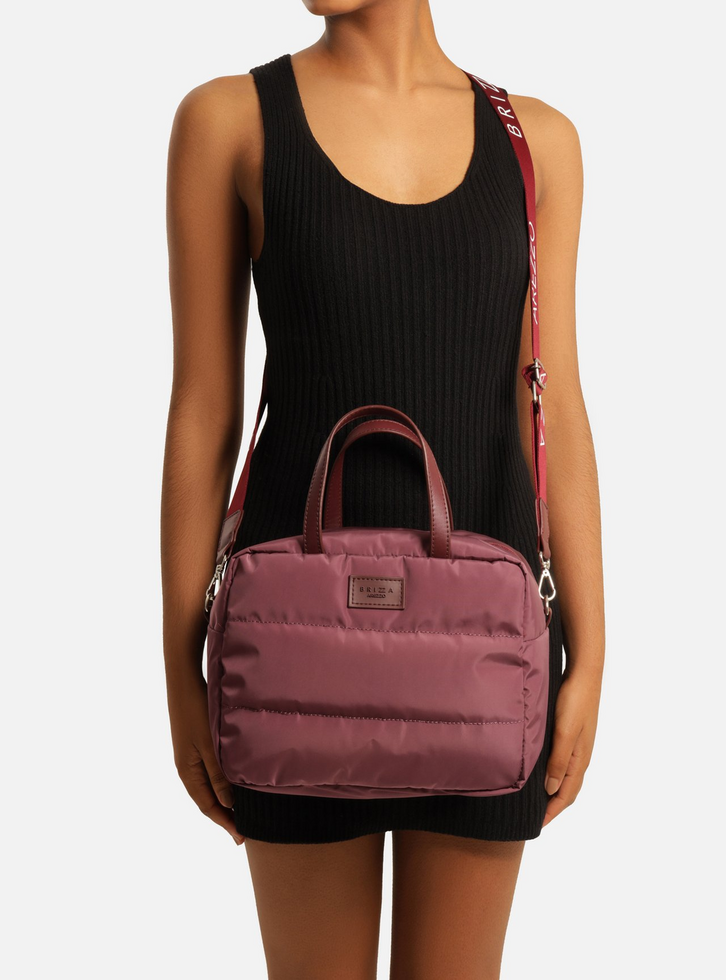 Bolsa tiracolo média em nylon bordô. O acessório tem formato estruturado, duas alças de mão e alça longa lateral, removível, regulável e em gorgurão com inscrição Arezzo Brizza. Traz capas com costuras estofadas, fecho superior em zíper e tag emborrachada com nome da marca. Com revestimento interno que ajuda a manter a comida ou bebida refrigerados.