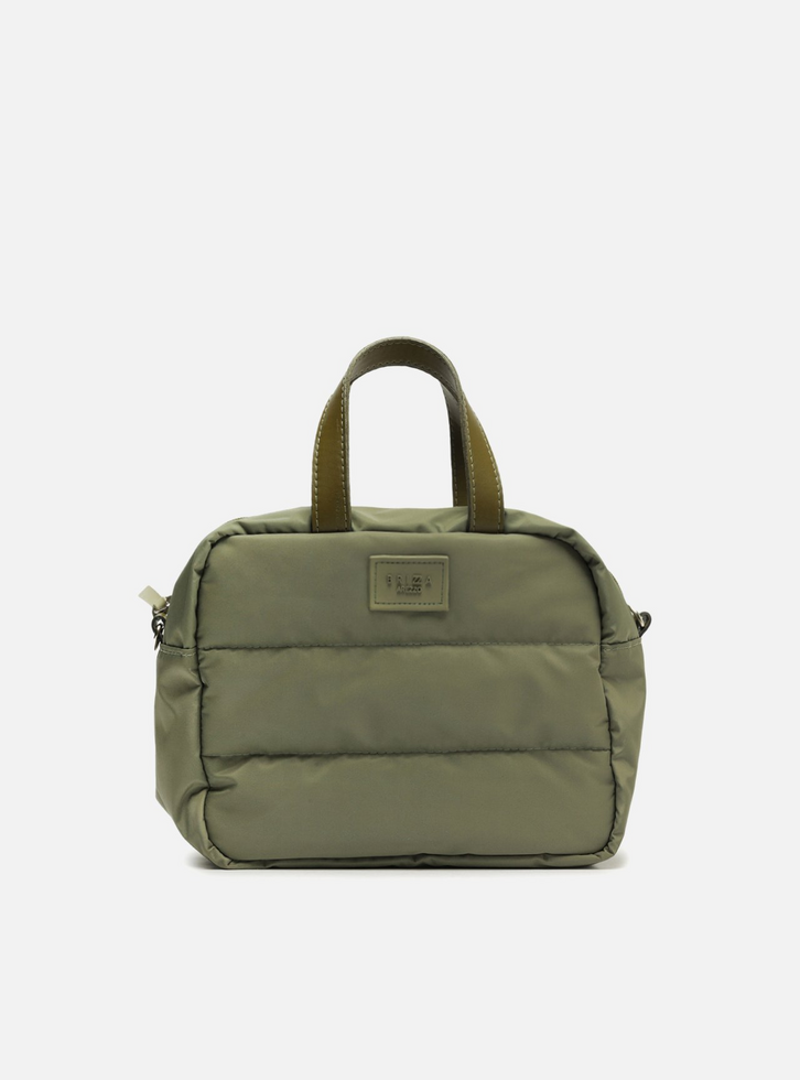 Bolsa tiracolo média em nylon verde. O acessório tem formato estruturado, duas alças de mão e alça longa lateral, removível, regulável e em gorgurão com inscrição Arezzo Brizza. Traz capas com costuras estofadas, fecho superior em zíper e tag emborrachada com nome da marca. Com revestimento interno que ajuda a manter a comida ou bebida refrigerados.