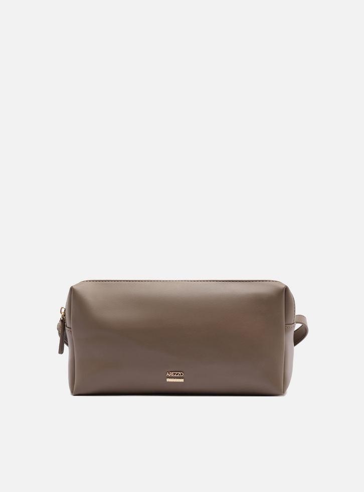 Bolsa feminina tiracolo média cinza. O acessório tem formato retangular e estrutura maleável, com acabamento liso e visual minimalista. Traz fecho superior em zíper com puxador em tira e alça lateral curta, que facilita o manuseio. Possui detalhe metálico com inscrição do nome da marca na parte frontal.