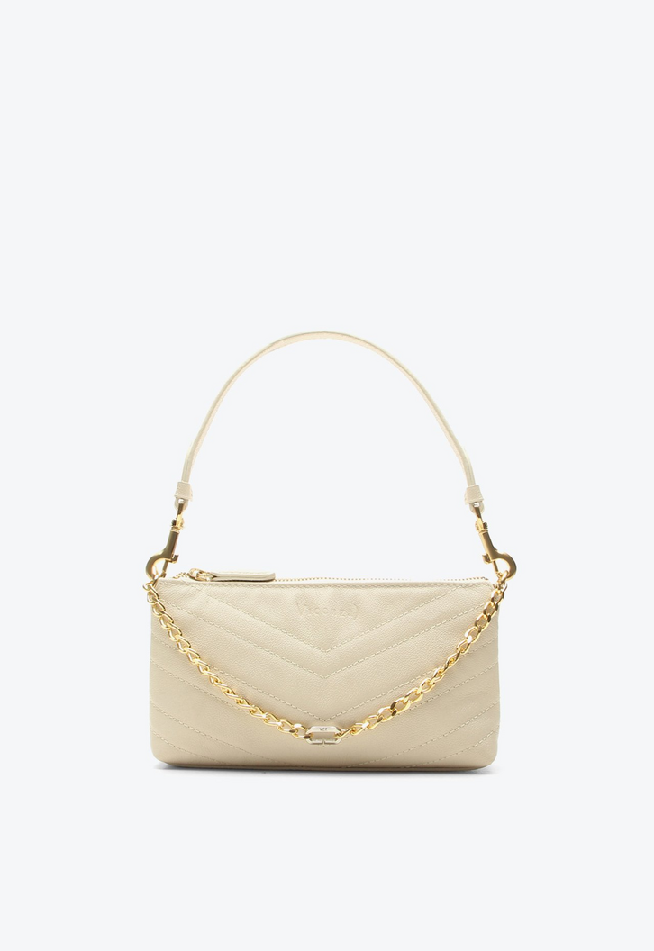Bolsa tiracolo Laís pequena em couro bege. Com alça de mão e tiracolo ajustável, essa bolsa possui acabamento texturizado que combina sofisticação e design clássico. Com tamanho compacto, é ideal para levar itens essenciais como celular, carteira e pequenos acessórios. Perfeita para complementar looks noturnos, combinando com vestidos, saias ou calças elegantes. Aposte!