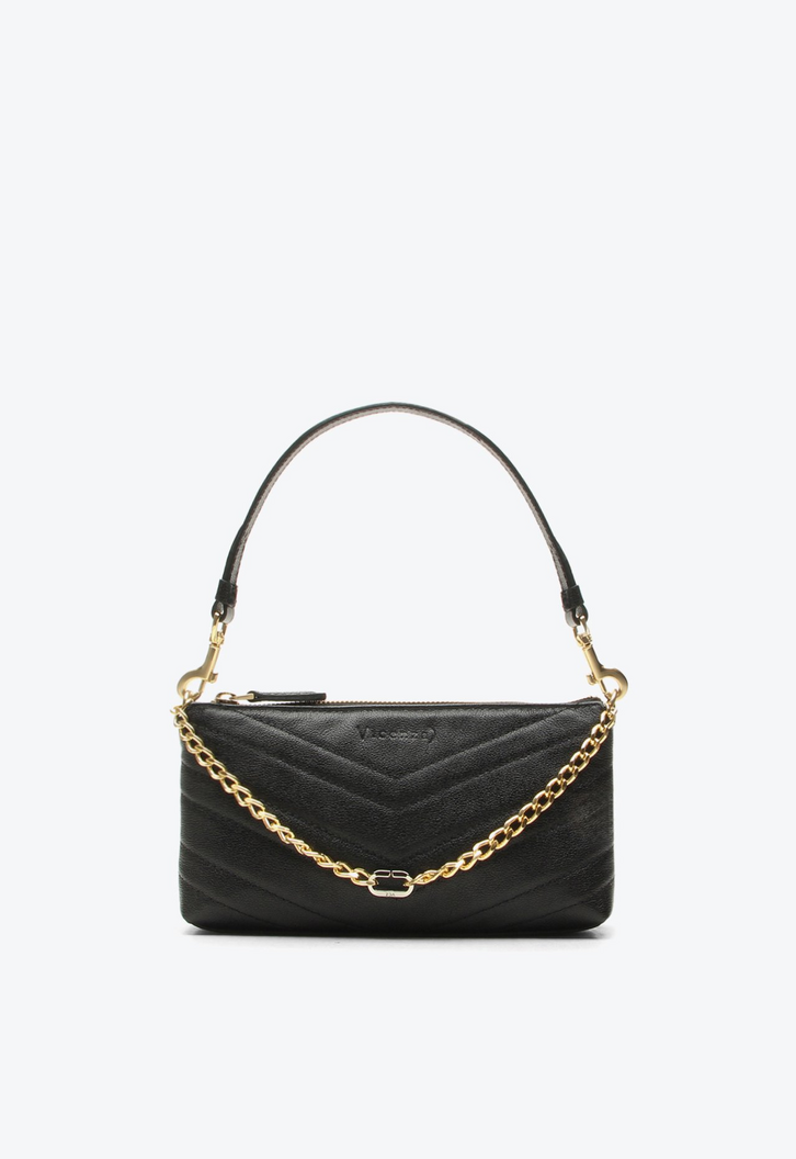 Bolsa tiracolo Laís pequena em couro preta. Com alça de mão e tiracolo ajustável, essa bolsa possui acabamento texturizado que combina sofisticação e design clássico. Com tamanho compacto, é ideal para levar itens essenciais como celular, carteira e pequenos acessórios. Perfeita para complementar looks noturnos, combinando com vestidos, saias ou calças elegantes. Aposte!
