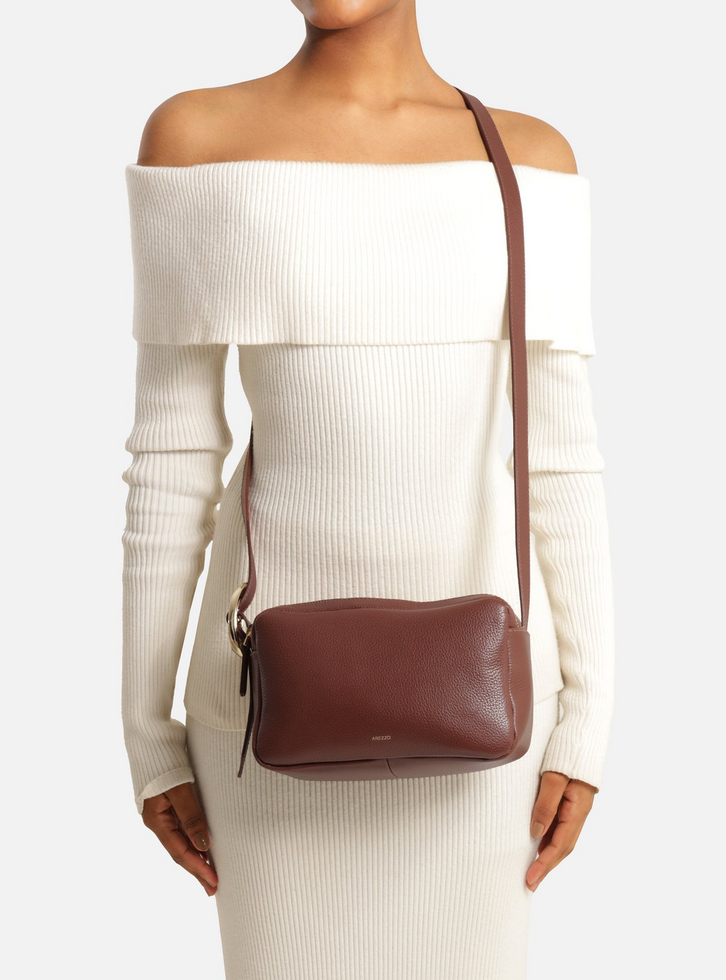 Bolsa Tiracolo Marrom Couro Pequena Fivela Oval