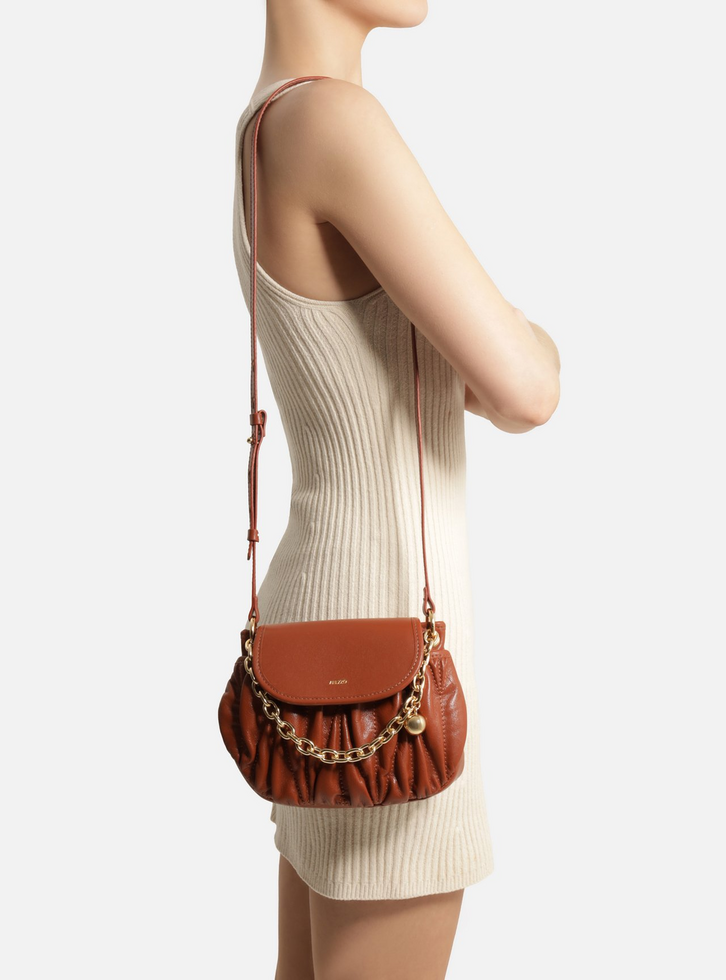 Bolsa Tiracolo Marrom Couro Pequena Franzido Corrente