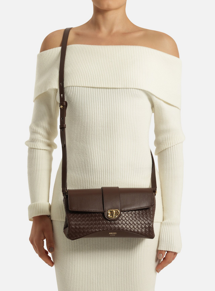 Bolsa Tiracolo Marrom Escuro Média Tressê Metal Orgânico