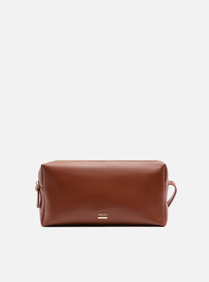 Bolsa feminina tiracolo média marrom. O acessório tem formato retangular e estrutura maleável, com acabamento liso e visual minimalista. Traz fecho superior em zíper com puxador em tira e alça lateral curta, que facilita o manuseio. Possui detalhe metálico com inscrição do nome da marca na parte frontal.