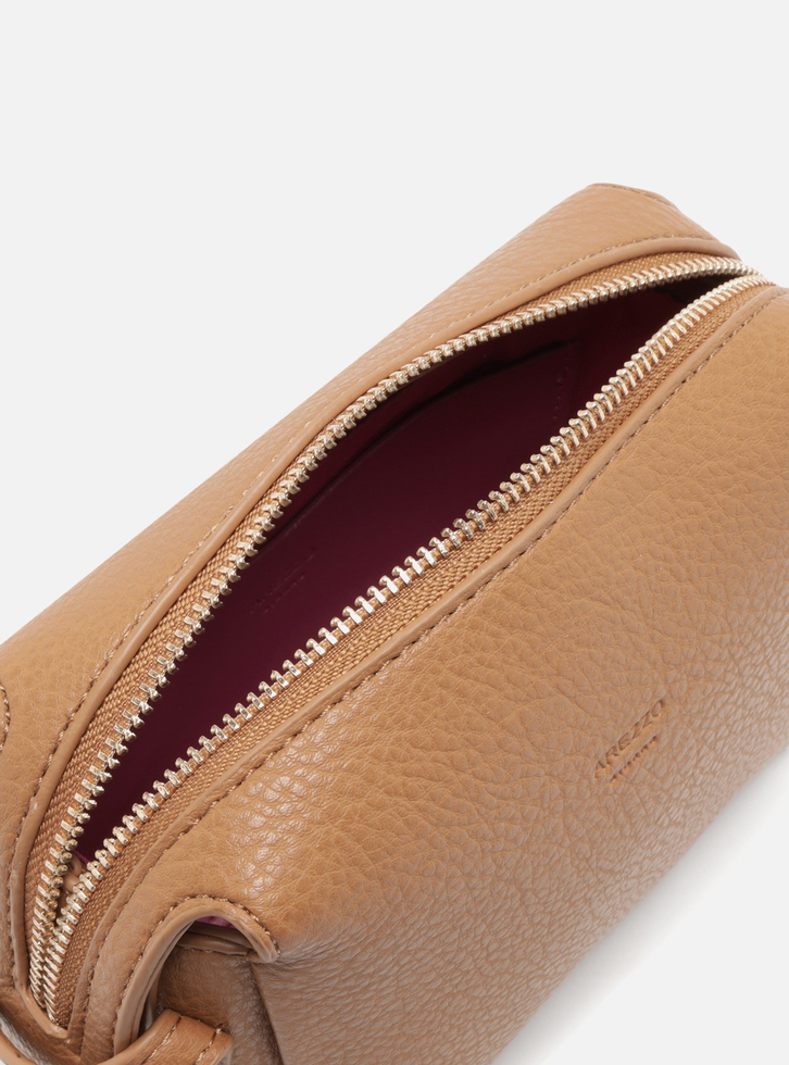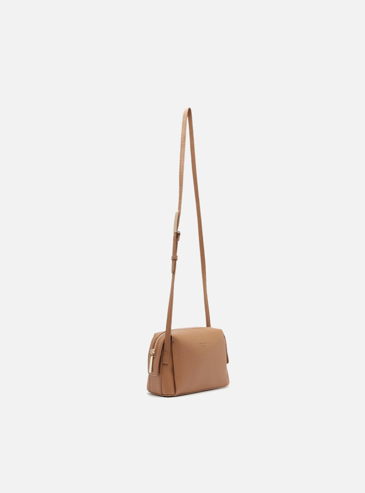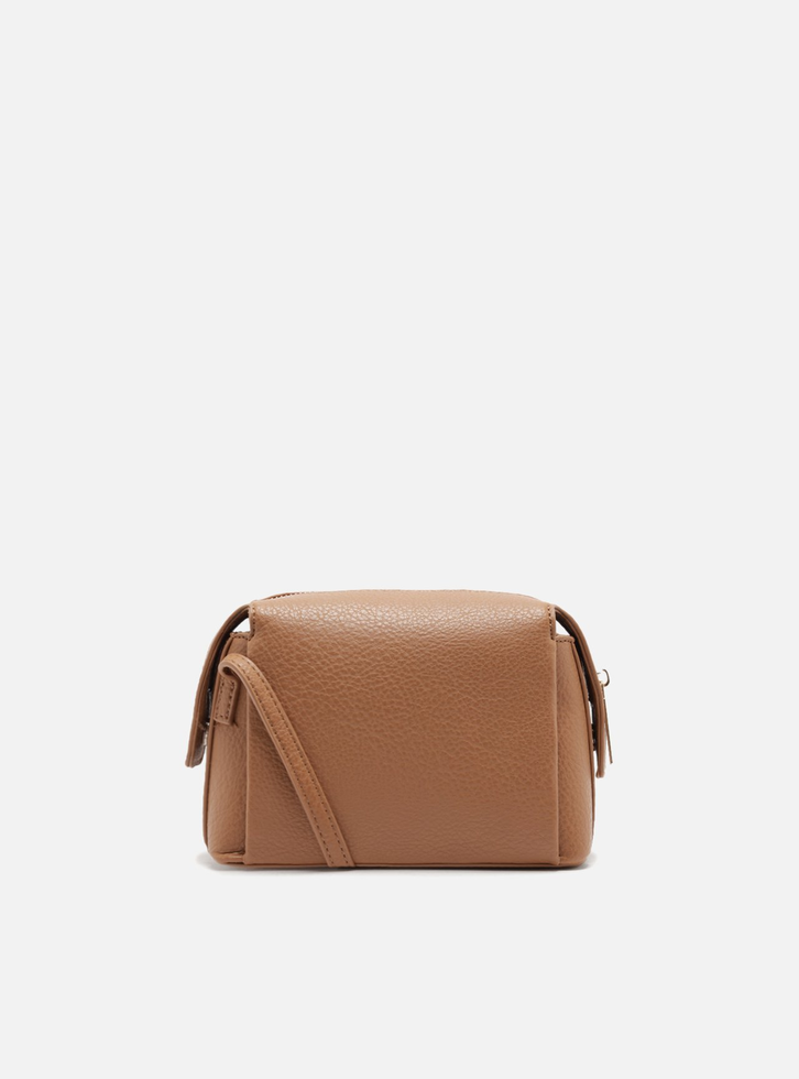 Bolsa tiracolo pequena marrom. O acessório tem formato retangular e estruturado, laterais arredondadas e acabamento texturizado. Traz alça lateral regulável e fecho em zíper com puxador. Possui inscrição do nome da marca na capa.