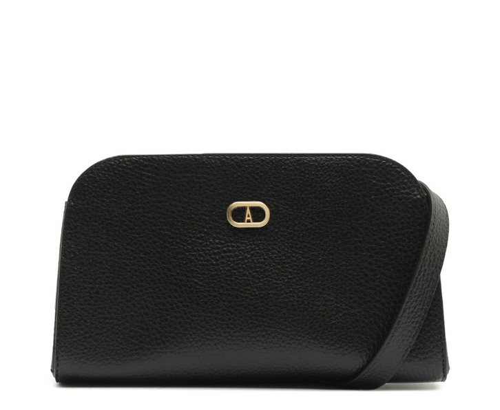 Bolsa tiracolo média e texturizada, na cor preta. De material similar ao couro com efeito texturizado nas capas, o modelo possui shape estruturado com acabamento a fio nos contornos de toda a peça. Possui alça transversal longa e fixa. Fechamento superior em zíper metálico, com puxador em tira. Com forro e etiqueta emborrachada exclusiva Anacapri, na parte interna. Traz aplicação de pin metálico em cápsula Anacapri, centralizado na parte superior da capa frontal.