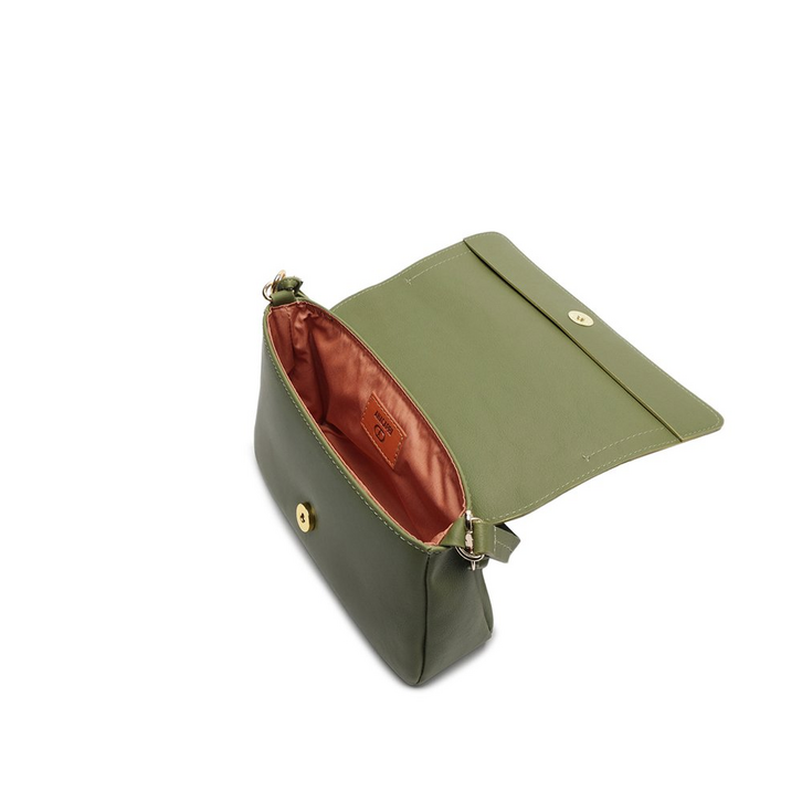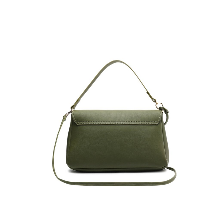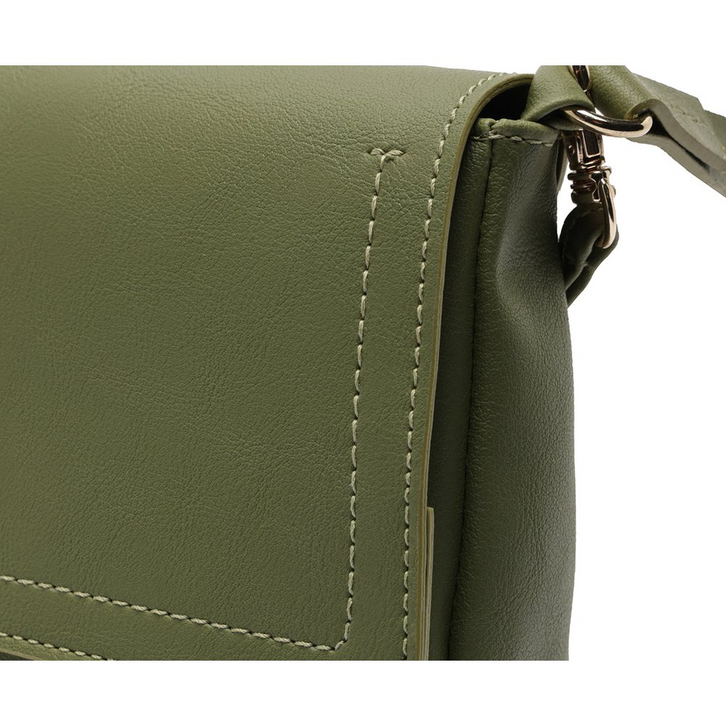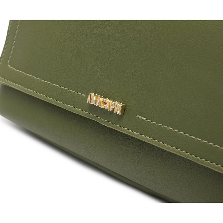 Bolsa tiracolo média, com detalhe em costura ornamental, na cor verde. O modelo de material similar ao couro possui shape retangular, com detalhe em costura ornamental no contorno de toda a peça, no mesmo tom da bolsa. No tamanho M, traz alça longa regulável e removível - e uma alça de ombro fixa. Apresenta fecho em tampo, com botão de pressão em ímã, estilo carteiro. Na parte interna, traz forro especial colorido e etiqueta emborrachada exclusiva Anacapri. Com aplicação de pin metálico Anacapri, centralizado na parte inferior do tampo, na capa frontal.
