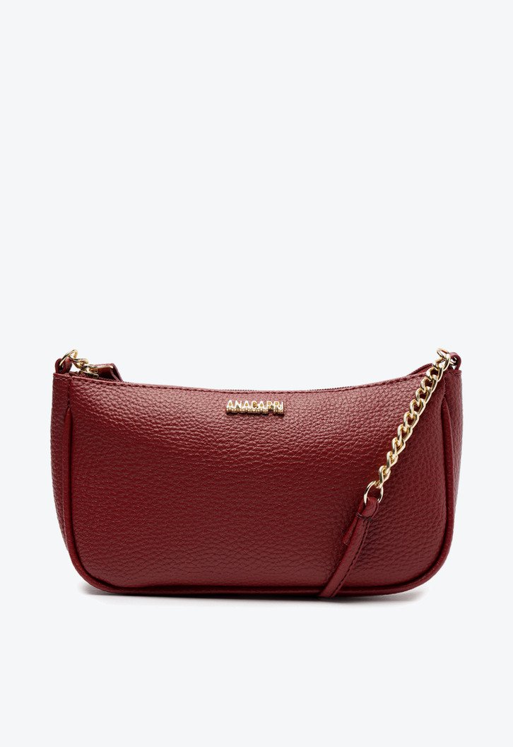 Bolsa tiracolo Fun média, na cor vermelha. A bolsa traz shape estruturado e retangular no tamanho médio. O modelo possui alça longa transversal com aplicação de correntaria de metal imponente. Apresenta fecho superior em zíper com puxador em tira fina. Com forro exclusivo e personalizado em tom rosé, traz aplicação de etiqueta interna e emborrachada Anacapri. Com aplicação de pin metálico Anacapri, centralizado na parte superior da capa frontal.