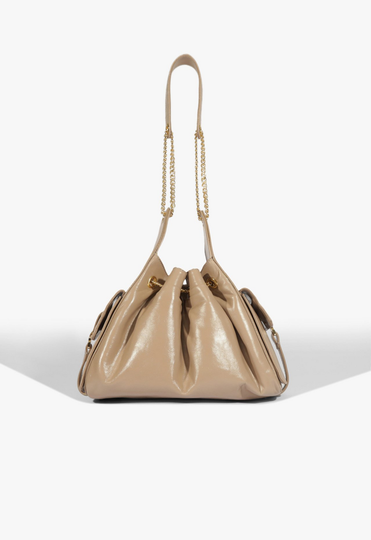 Eleve seu estilo a um novo nível com a Bolsa Tiracolo Média Lilibet de Couro Cinza. Este modelo se destaca por sua elegância e design refinado. O acabamento brilhante e a textura sutil do couro criam um visual luxuoso, enquanto o formato saco com amarração garante um toque moderno e descontraído.