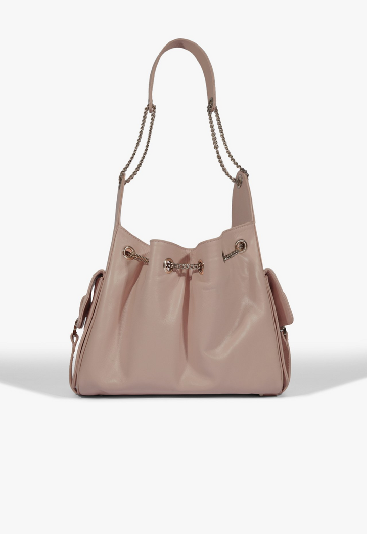 Eleve seu estilo a um novo nível com a Bolsa Tiracolo Média Lilibet de Couro Rosa. Este modelo se destaca por sua elegância e design refinado. O acabamento brilhante e a textura sutil do couro criam um visual luxuoso, enquanto o formato saco com amarração garante um toque moderno e descontraído.
