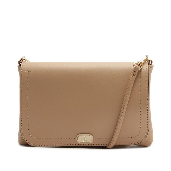 Bolsa tiracolo pequena, com alça removível, na cor bege. O modelo de material similar ao couro com efeito envernizado traz uma alça longa regulável e removível - com mosquetões para regulagem, podendo ser utilizada como crossbody ou baguete. Com shape retangular estilo mini bag, possui fecho no tampo, por botão de ímã. Apresenta forro interno em tom rosê e aplicação de etiqueta emborrachada Anacapri com a inscrição da frase: “Leve a vida numa bolsa”. Com detalhes em costura dupla contrastante e aplicação de pin metálico em cápsula Anacapri, centralizado na parte inferior do tampo, na capa frontal.