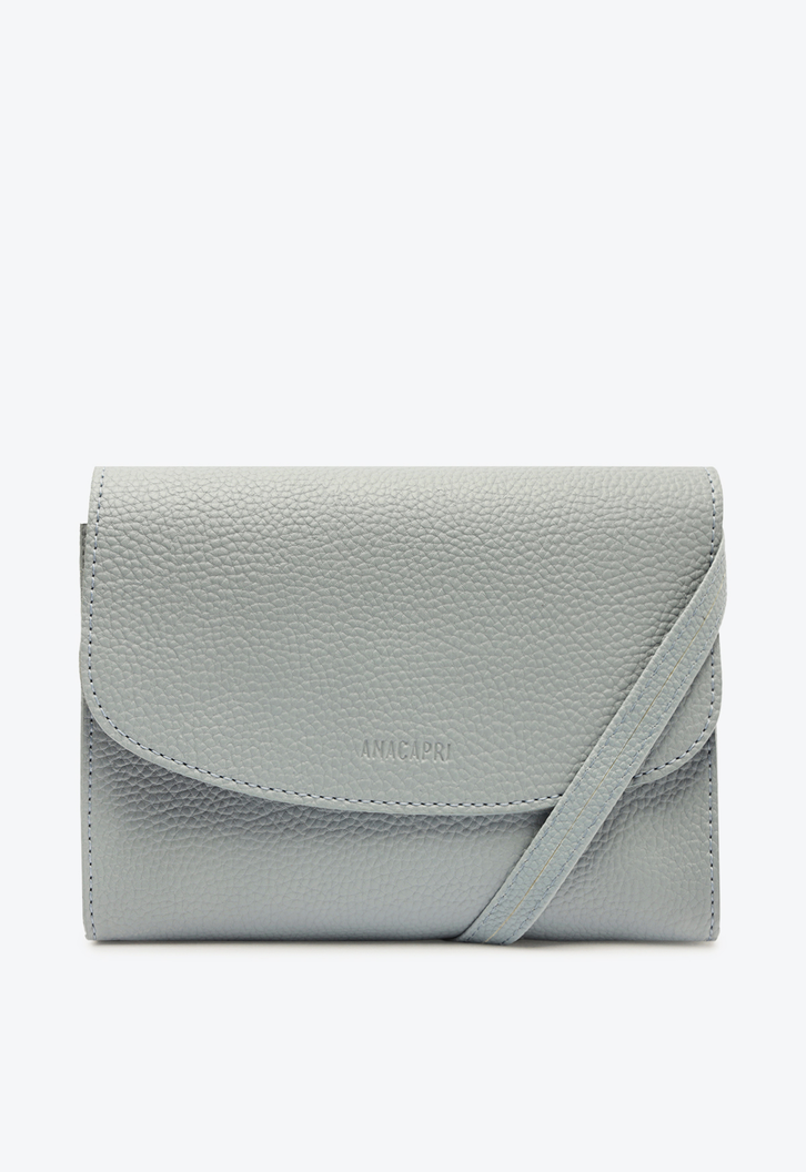Bolsa Tiracolo Média Maxxie Azul. De material similar ao couro, o modelo tem formato retangular estilo envelope, laterais arredondadas e acabamento texturizado. Traz alça transversal fina e fecho em tampo frontal com ímãs internos. Contornada em pespontos delicados, traz assinatura Anacapri em relevo na capa frontal.