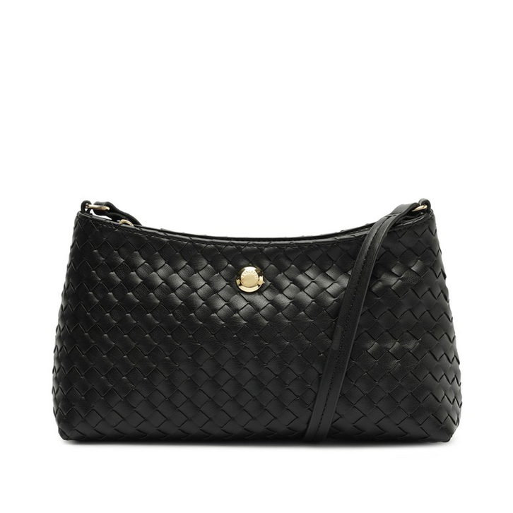 Bolsa tiracolo pequena com efeito tramado, na cor preta. O modelo apresenta shape retangular com efeito soft e possui acabamento texturizado imponente - com efeito em trama artesanal nas capas. Traz alça longa regulável e fechamento superior por zíper metálico, com puxador personalizado Anacapri. Possui forro em tom rosê e etiqueta emborrachada exclusiva Anacapri. Traz aplicação de pin metálico imponente Anacapri, centralizado na parte superior da capa frontal.