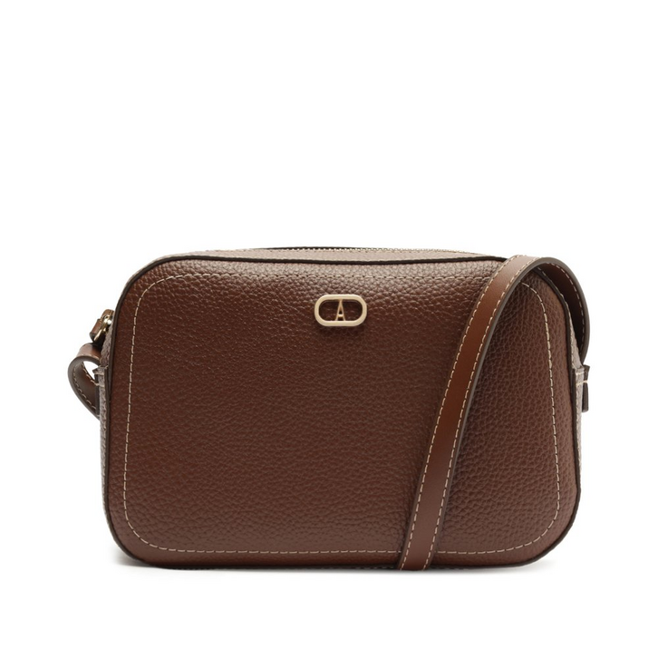 Bolsa tiracolo Office média, na cor marrom. A bolsa traz shape arredondado e estruturado - estilo camera bag - com detalhe em contorno em costura pesponto ornamental por toda a peça, com acabamentos a fio. Possui alça longa regulável. Forrada, com bolsinho interno, apresenta fecho superior em zíper. Traz aplicação de pin metálico em cápsula, com assinatura Anacapri, centralizado na parte superior da capa frontal.