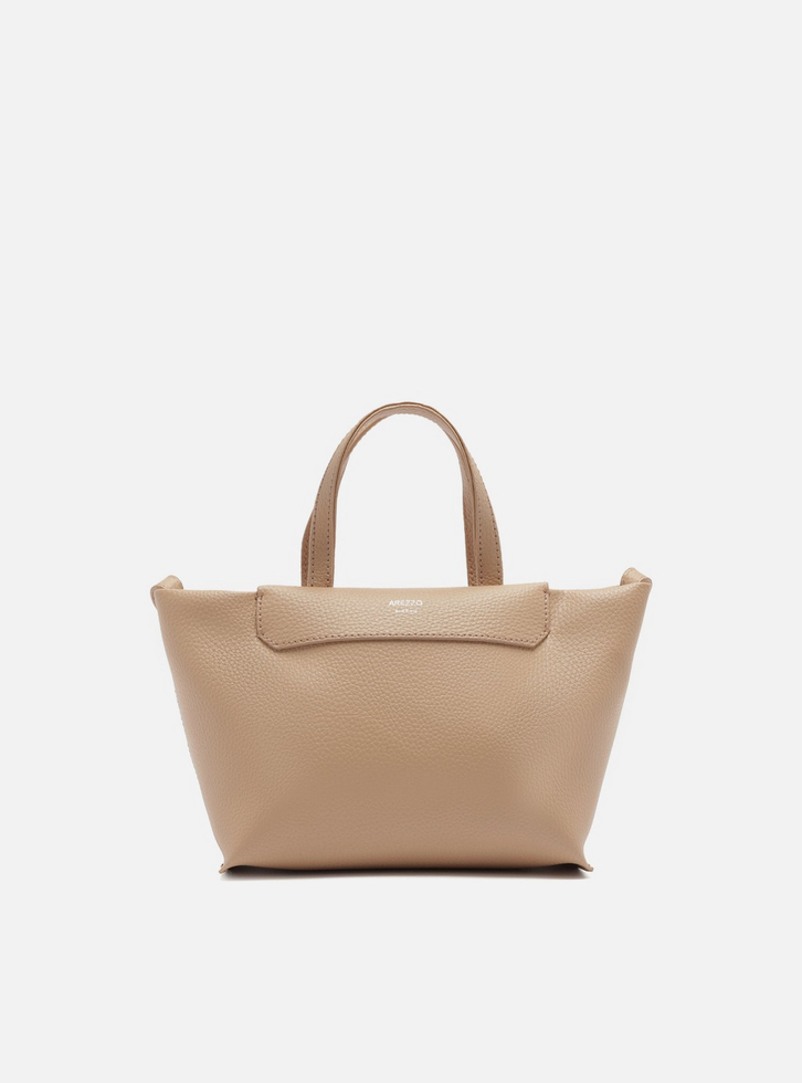 Bolsa tiracolo média nude. O acessório tem formato estruturado, laterais retas e acabamento texturizado. Traz alça lateral regulável, duas alças de mão e fecho magnético.