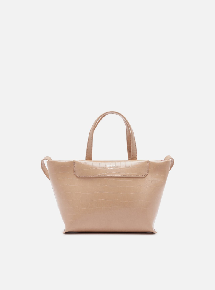 Bolsa tiracolo média nude. O acessório tem formato estruturado, laterais retas e acabamento texturizado. Traz alça lateral regulável, duas alças de mão e fecho magnético.