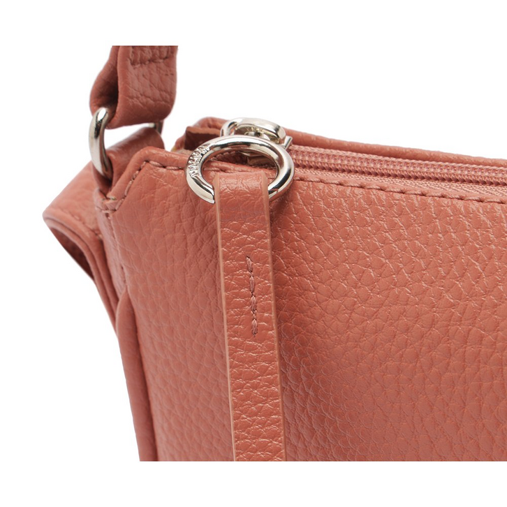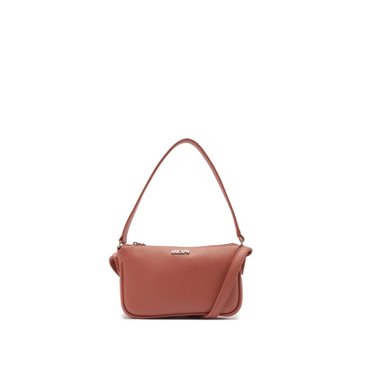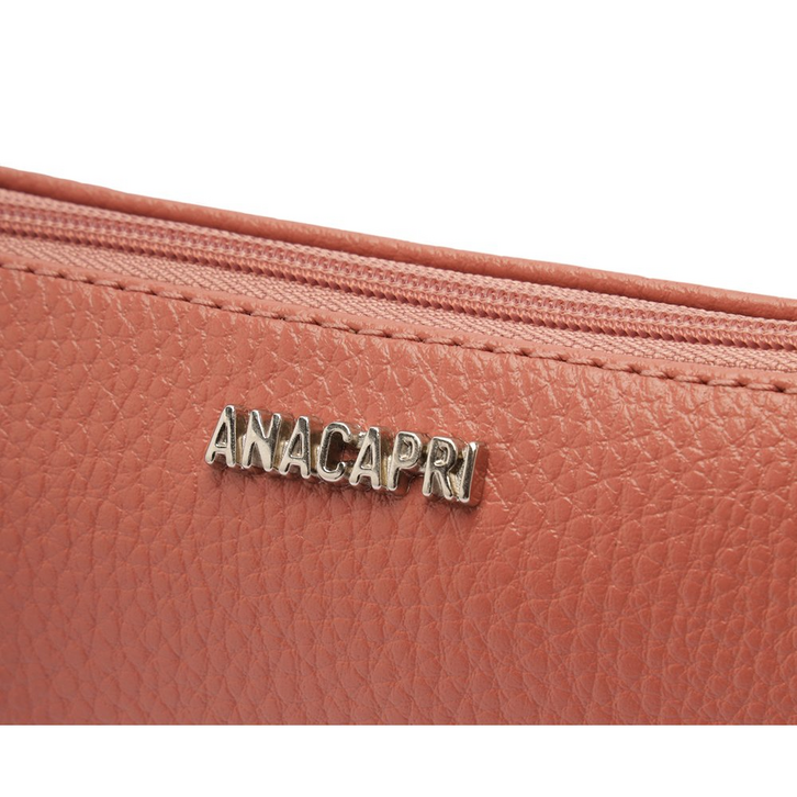 Bolsa tiracolo baguete, pequena e texturizada, na cor rosa. Com duas opções de uso: uma alça longa transversal removível, para uso a tiracolo e uma alça de ombro, para uso como baguete. Estruturada, com shape retangular e em material similar ao couro floater, com efeito texturizado nas capas. Apresenta fecho superior em zíper com puxador em tira com elo metálico personalizado, com assinatura Anacapri. Traz aplicação de pin metálico com assinatura Anacapri, centralizado na parte superior da capa frontal.
