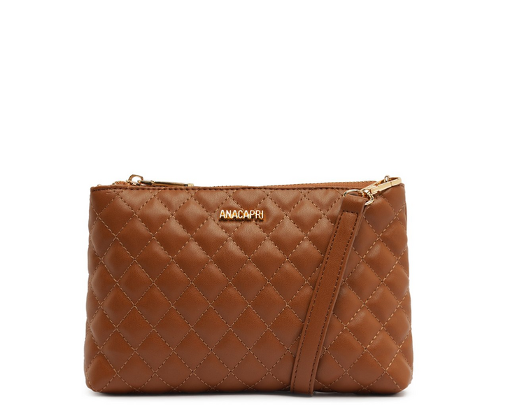 Bolsa tiracolo média em matelassê, na cor marrom. O modelo estruturado com shape retangular possui alça em tira transversal, regulável e removível por mosquetão. De material similar ao couro, apresenta detalhe em costura matelassê com design geométrico, na capa frontal. Com forro rosê, bolsinho com fecho em zíper exclusivo e etiqueta emborrachada Anacapri na parte interna. Possui fecho superior em zíper metálico com puxador exclusivo Anacapri. Traz aplicação de pin metálico com assinatura Anacapri, centralizado na parte inferior da capa frontal.