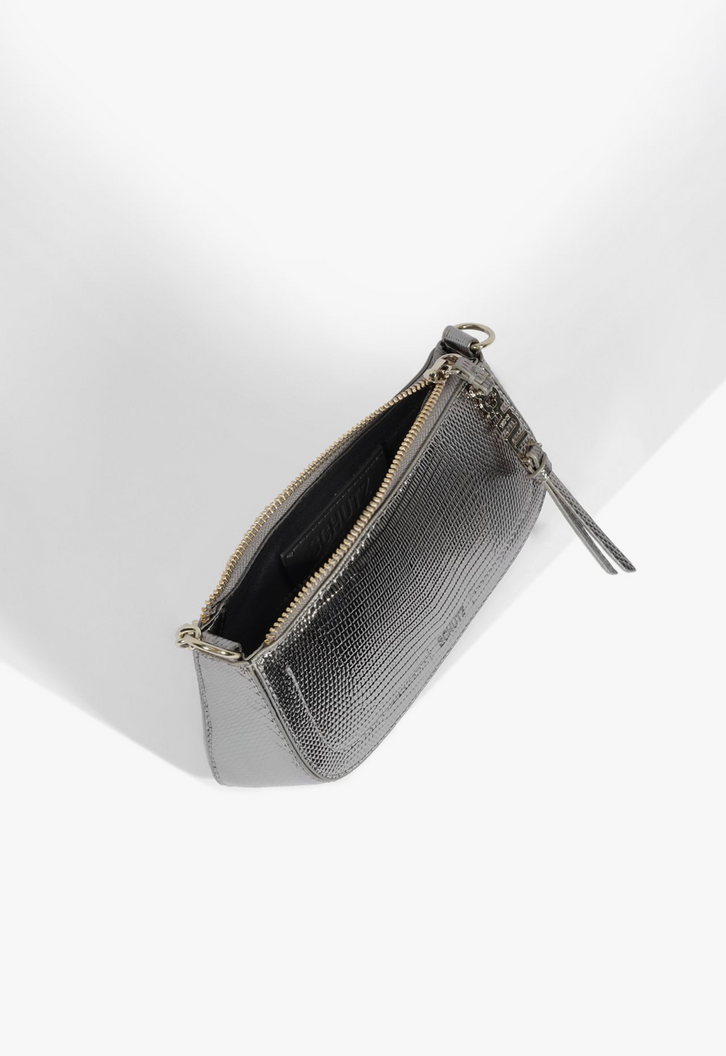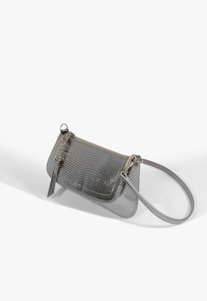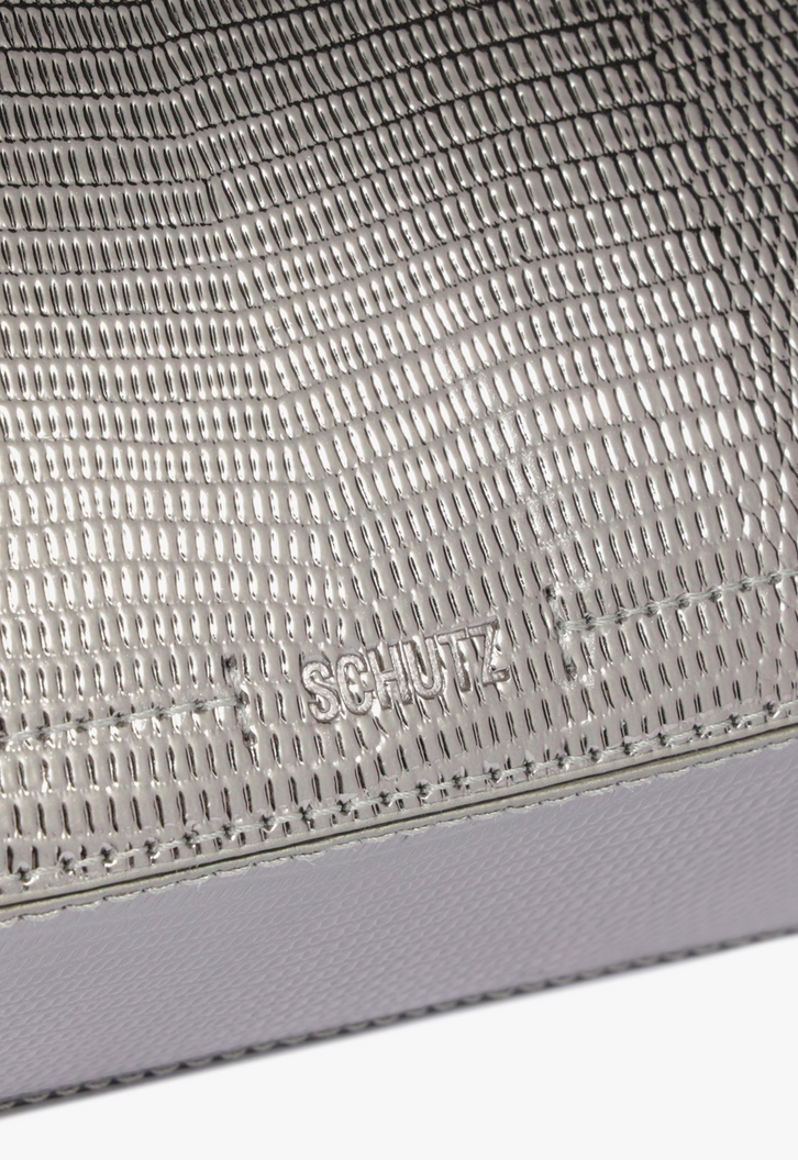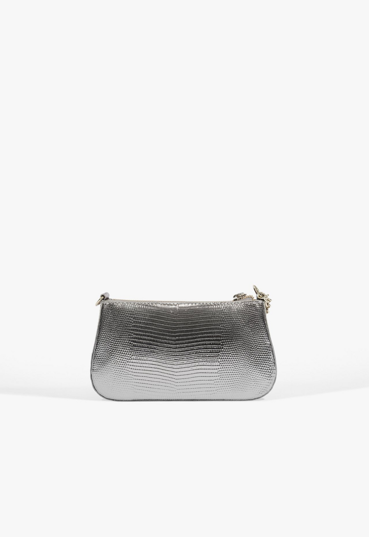 Com um design elegante e moderno, a bolsa tiracolo Tina é cheia de detalhes interessantes. Da aplicação metalizada que arremata o fechamento de zíper à corrente na alça (fixa, com regulagem para usar no ombro ou como tiracolo), essa bolsa prata tem um visual glam e trendy que atualiza o look na hora! Comprimento da alça tiracolo: 55 cm