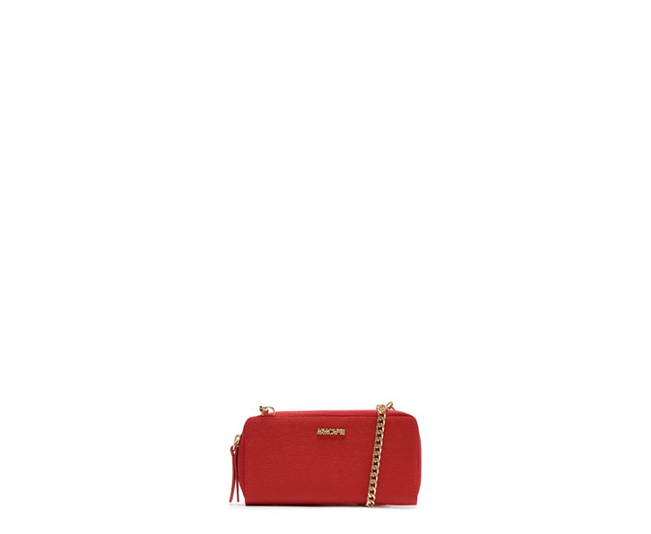 Bolsa Tiracolo, na cor vermelha. O acessório tem formato retangular em material similar ao couro, com acabamento a fio pintado. Traz alça transversal e removível em correntaria imponente e ombreira com regulagem. Forrada, acomoda celular com segurança e possui porta-cartão interno - com duas divisórias para acomodar cartões e documentos. Possui fechamento superior em zíper. Apresenta aplicação de pin metálico com assinatura Anacapri, centralizado na parte superior da capa frontal. 2 em 1, o modelo pode ser utilizado como bolsa ou carteira.