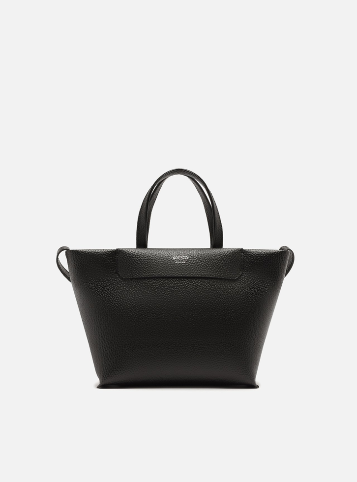 Bolsa tiracolo média preto. O acessório tem formato estruturado, laterais retas e acabamento texturizado. Traz alça lateral regulável, duas alças de mão e fecho magnético.