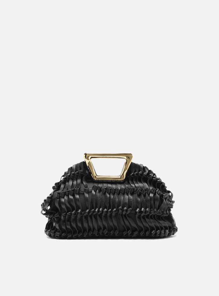 Bolsa tiracolo média de couro preta. O acessório tem formato estruturado e arredondado e tiras com nós aplicadas nas capas. Traz alça lateral em tira fina removível e alça de mão metálica, incorporada ao corpo da bolsa. Possui fecho superior.