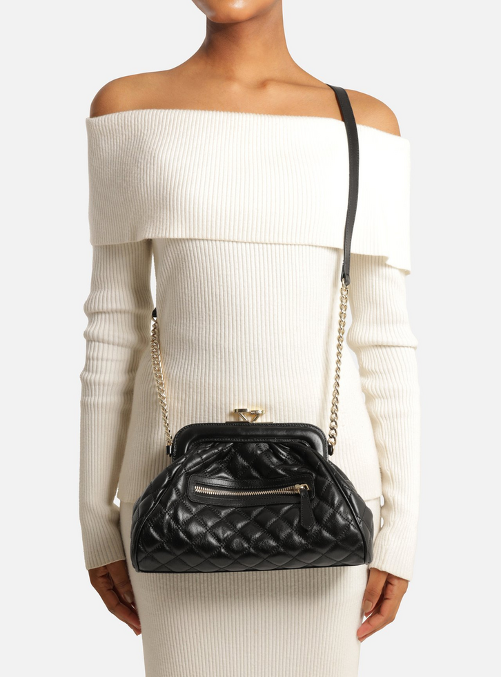 Bolsa Tiracolo Preta Couro Média Matelassê Corrente