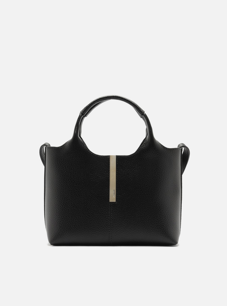 Bolsa tiracolo média preta. O acessório tem formato estruturado e acabamento texturizado. Traz alça longa regulável e alças de mão. Possui fecho superior em zíper com puxador. Conta ainda com detalhe em metal frontal com o nome da marca.